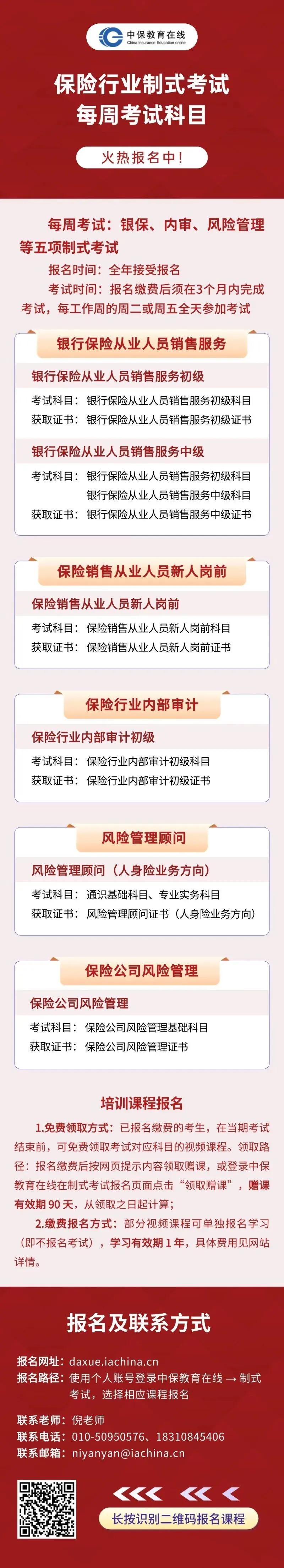 在保险业协会指导下,中保教育咨询(北京)有限公司自2015年起面向行业推出制式考试,持续为行业人才发展提供支撑~现该考试除两核项目外,其他项目已建立常态化周考机制,亮点满满!