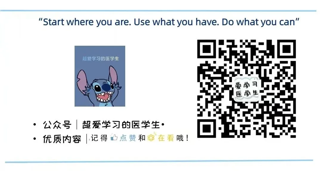 文末务必注明:“转自微信公众号:超爱学习的医学生”。超爱学习的医学生公众号向全体医学生或规培生或医师长期征集优秀作品。作品主题与医学生、医务工作者的学习、工作、生活相关,内容积极向上、长度不限,包括但不限于”考研经验贴“、“考博经验贴”、“住院医师生存攻略手册”、“临床思维”、“临床故事”等。