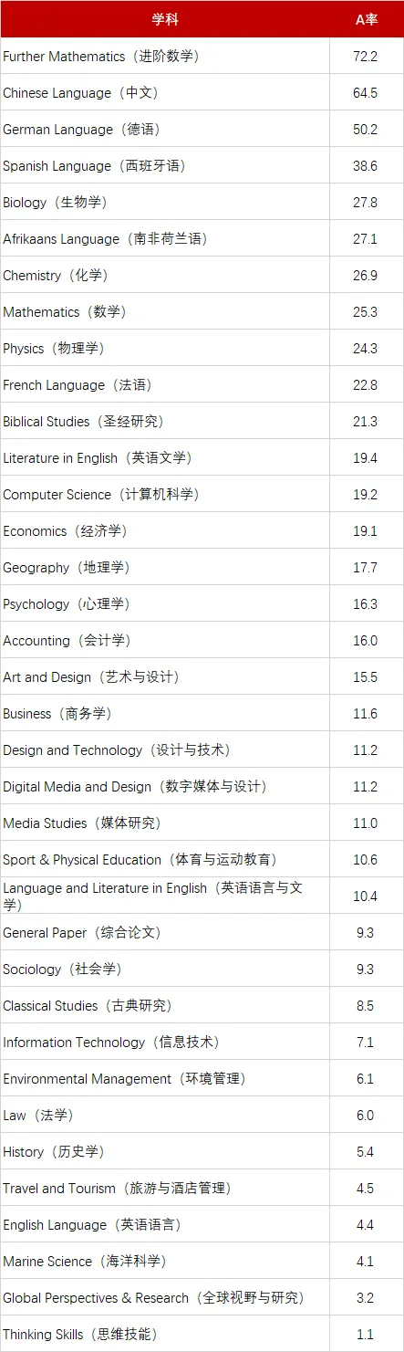 中国学生选择科目普遍偏向数学/物理/化学/生物/经济学等科目,而这几个科目的A*率分别为:
