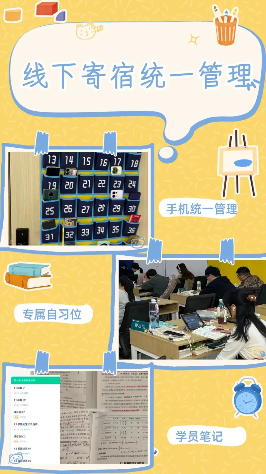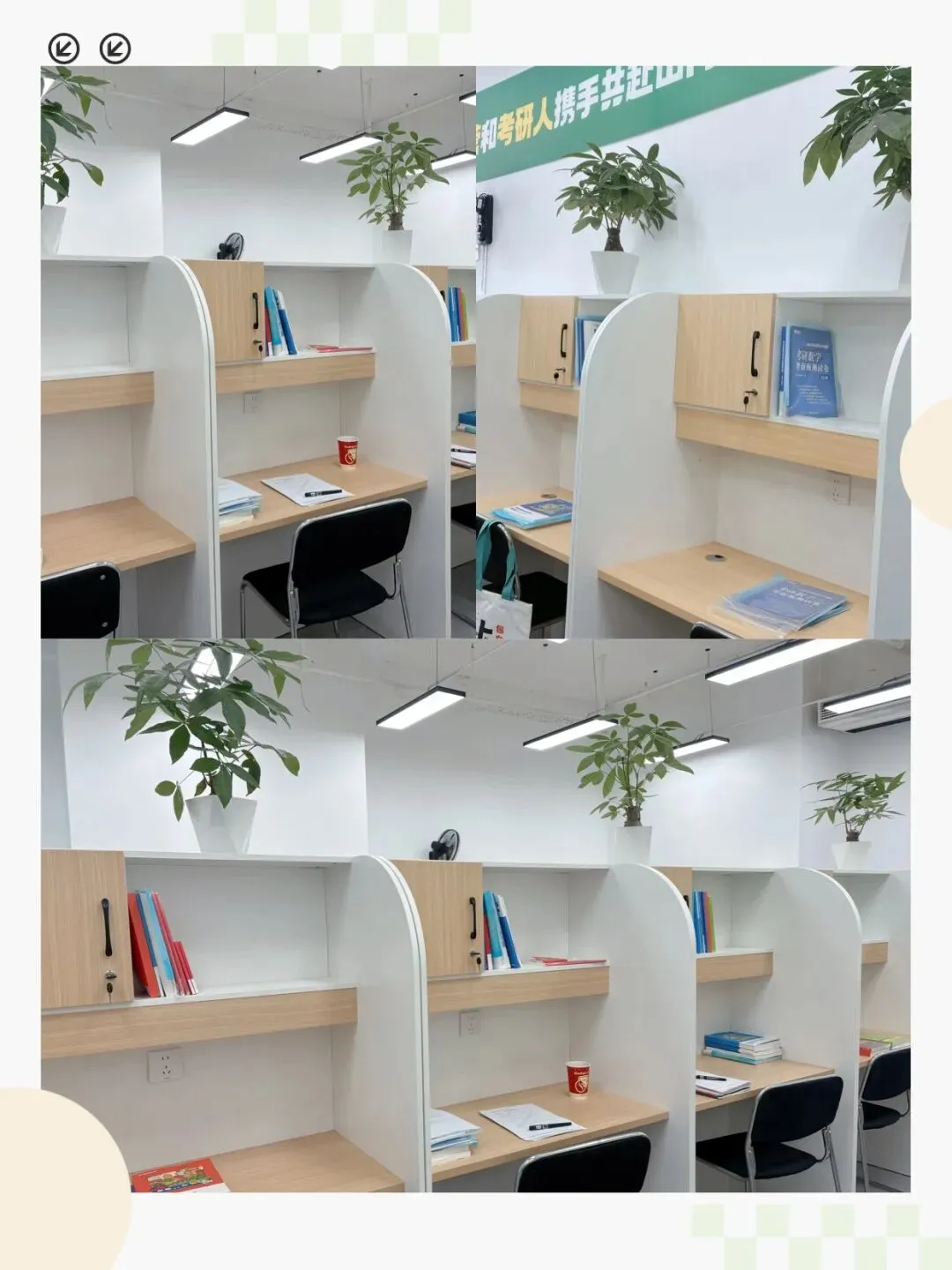拥有独立专属自习室,提供地插充电;配备暑冲面授教室;背书区为三楼共享背书区;专业课可在教学办公区线上上课;营地提供网络。