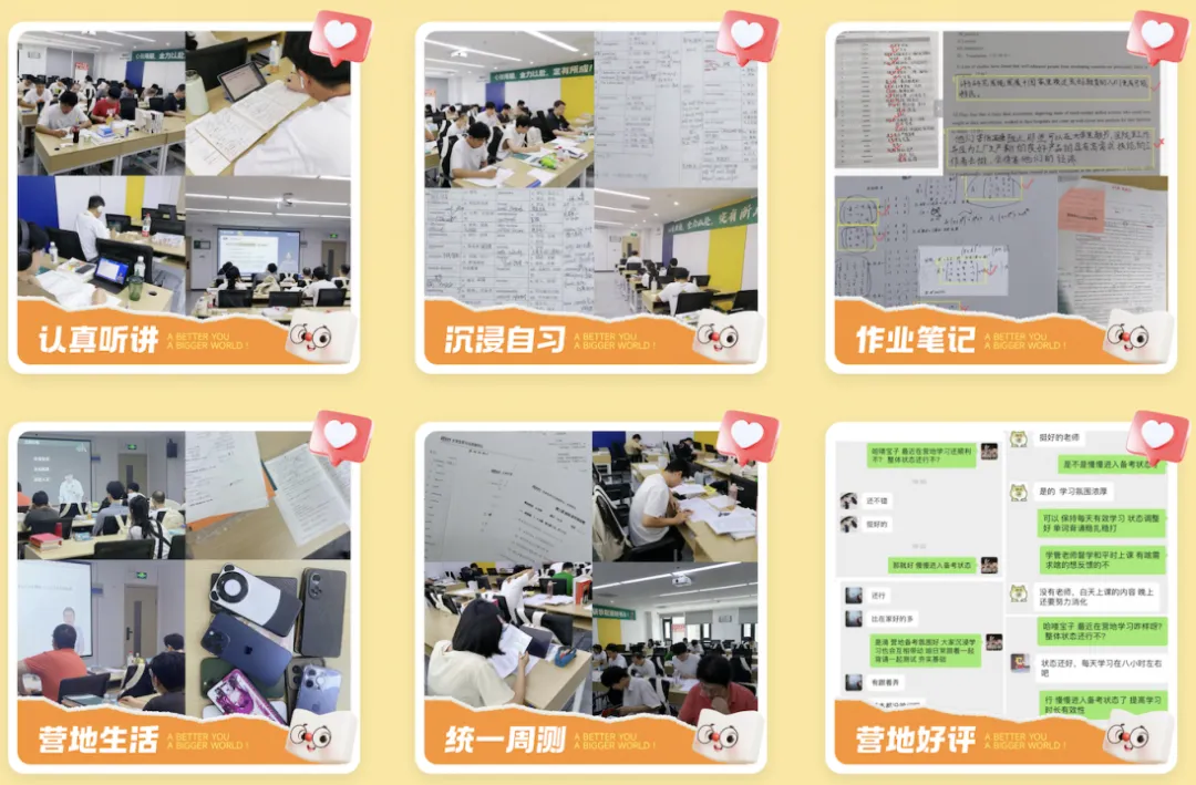 拥有独立专属自习室,提供桌面插座充电;配备暑冲面授教室;设有专属背书教室;配备专业课教室;营地提供网络。