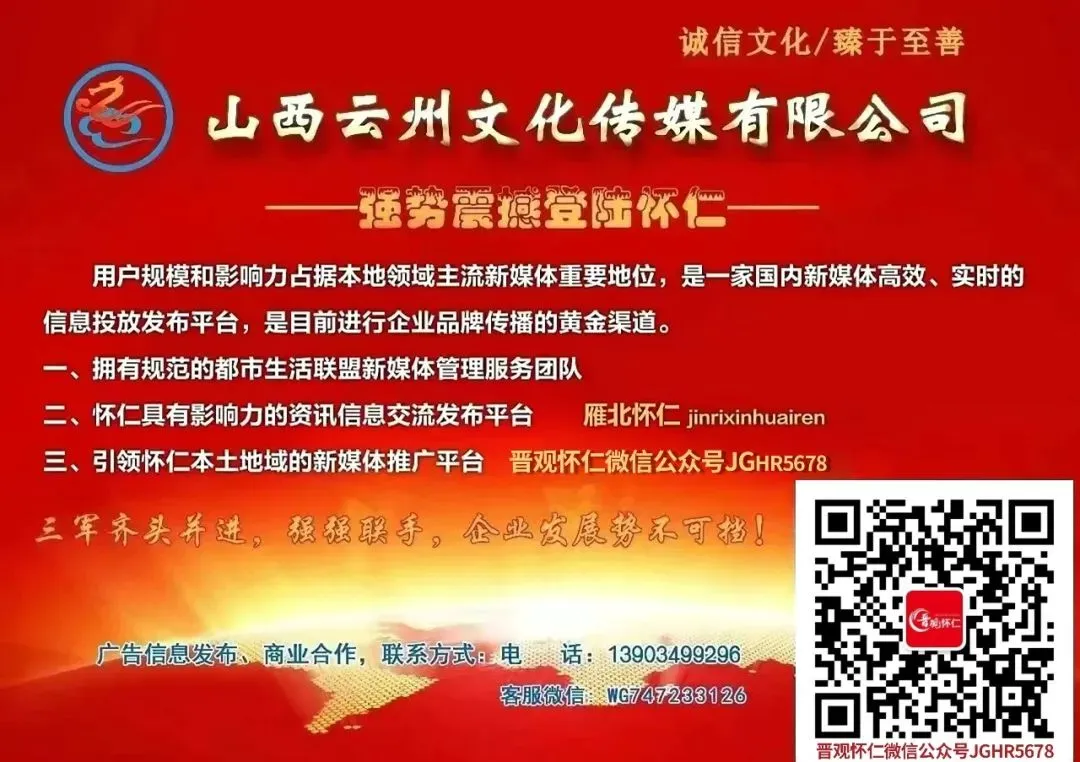 山西云州文化传媒有限公司 旗下:晋观怀仁、晋北怀仁、雁北怀仁 微信公众号、雁北怀仁视频号、晋观怀仁抖音号、晋北怀仁抖音号、今日怀仁快手号形成媒体矩阵欢迎广大网友与有识之士入驻加盟!