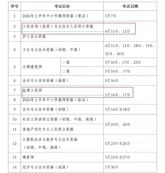 为切实做好专业技术人员职业资格考试规划与管理工作,方便广大专业技术人员参加职业资格考试,经征求有关部门同意,现就2026年度专业技术人员职业资格考试工作计划及有关事项通知如下: