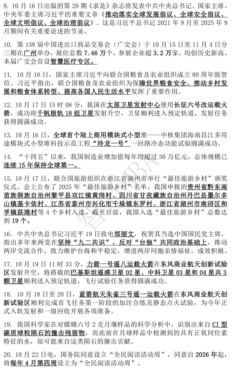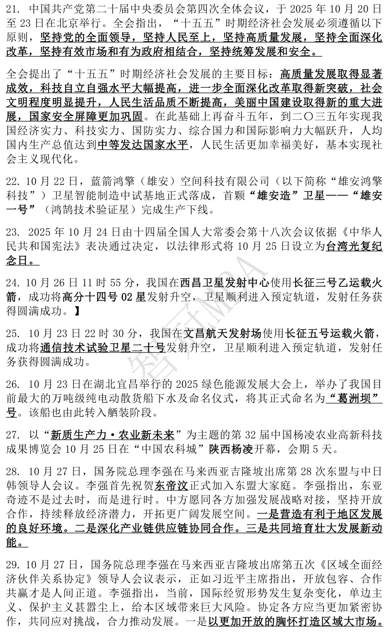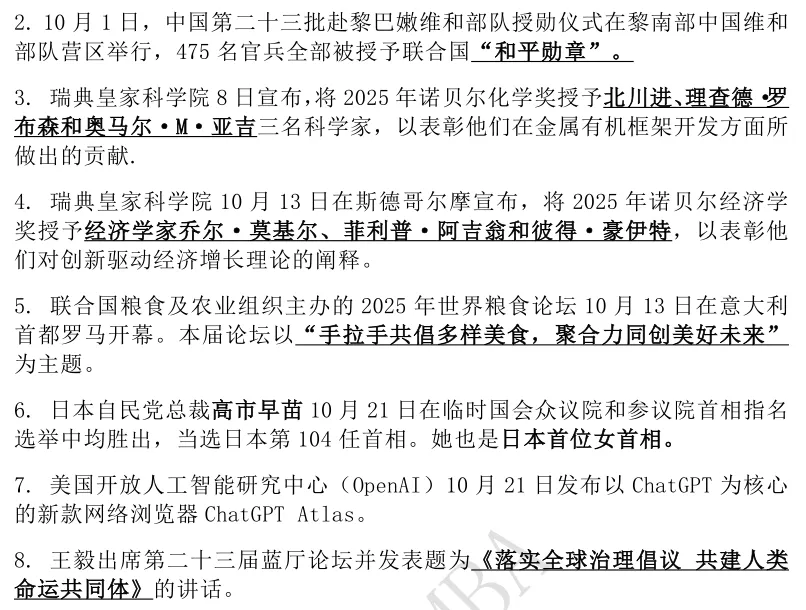【26考研复试】2025年10月时政内容汇总,MBA/MPA/MEM复试考生收藏!