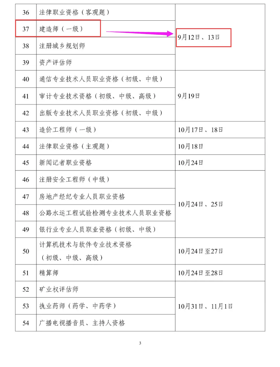 根据中国人事考试网发布的《2026 年度专业技术人员职业资格考试工作计划》,2026年一建考试时间为9月12日、13日。具体安排如下: