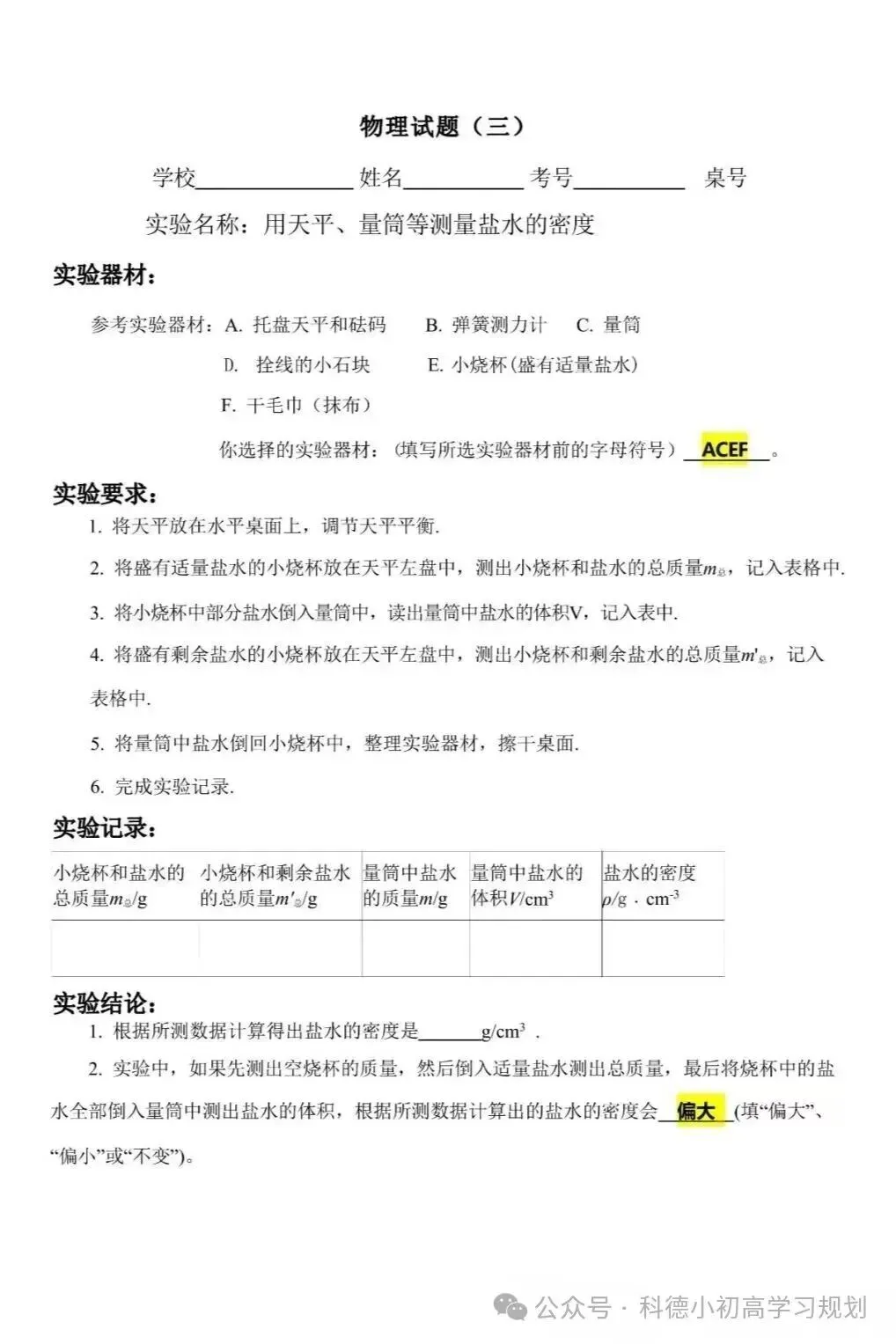 >临沂中考物化生实验操作、信息体育考试试卷及答案(含操作视频)
