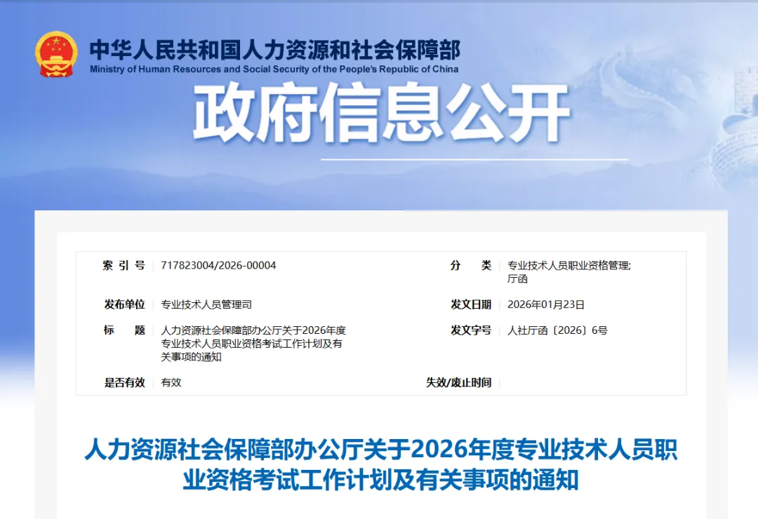 近日,人社部发布了2026年度专业技术人员资格考试时间,赶快来看看吧~