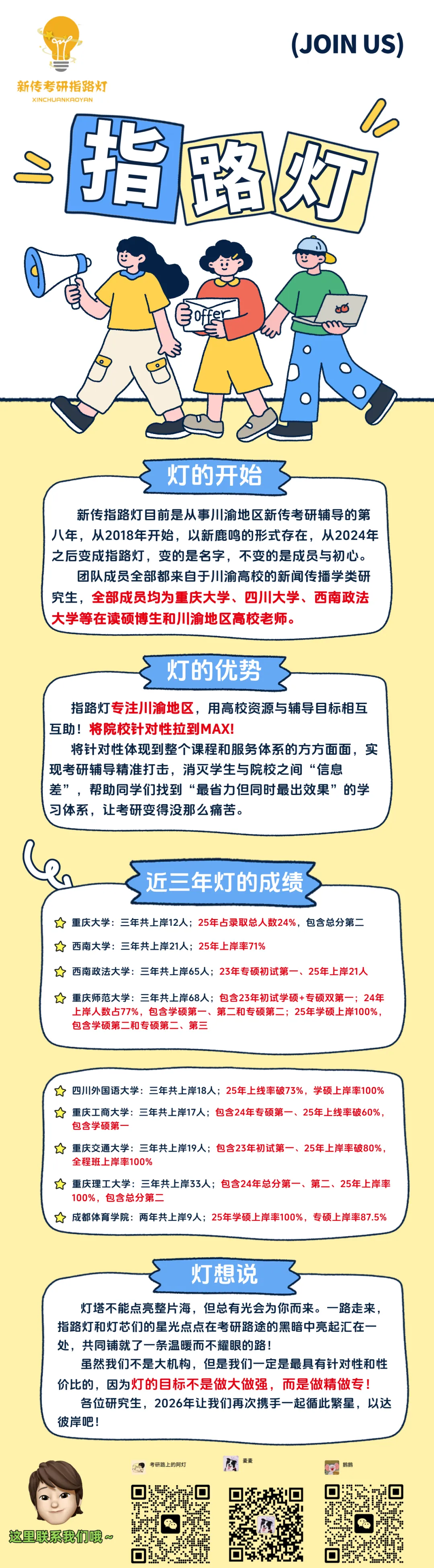 如果有时间去看看论文,是不是西大的老师都可以,扩展一下知识面,可以重点关注四大刊年度总结,(可以看下今年新传春晚讲座,B站有回放)老师很有可能问你喜欢看谁的论文或者书籍,建议多看几本,不要只准备1-2本,不够的!!你可以好好的介绍一下。