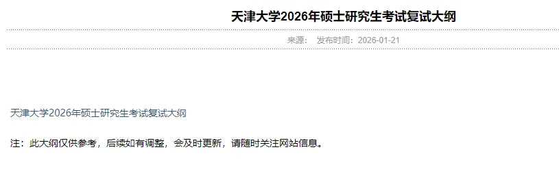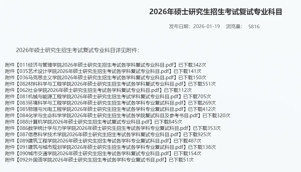 https://yzb.tju.edu.cn/xwzx/zxxx/202601/t20260121_324539.htm2026年硕士研究生招生考试(复试)参考书目