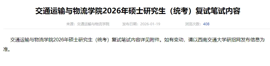 https://ctt.swjtu.edu.cn/info/4321/222461.htm2026年研究生招生考试复试科目参考大纲