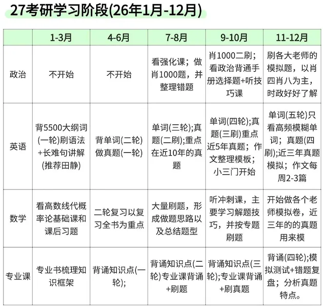 不少 27 考研萌新刚入门就满脸迷茫:全年备考该分阶段做什么?2 月份到底要怎么学?一天学 2 小时真的够用吗?