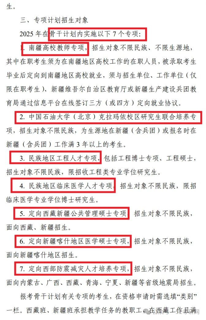另关于少干计划的调剂:报考“少数民族高层次骨干人才计划”的考生不得调剂到该计划以外录取;未报考的不得调剂入该计划录取。