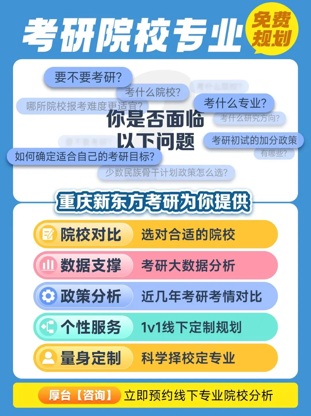 也可以直接联系新东方专业的考研规划老师,给同学做下清晰的规划分析~