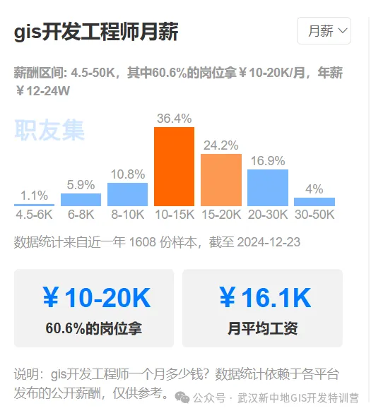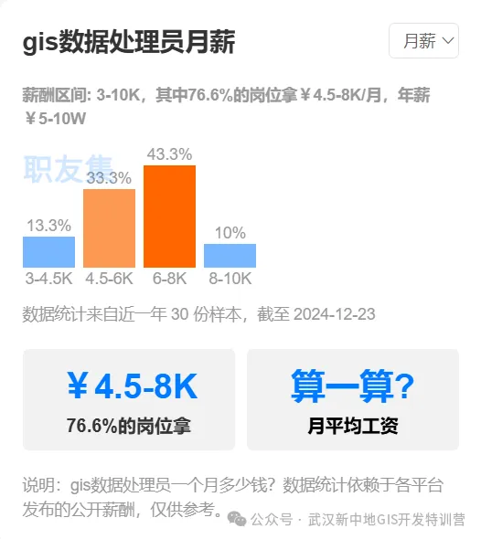 但不可忽视的是,GIS相关专业的同学如果想直接就业,薪资竞争力最大、性价比最高的还是GIS开发岗。