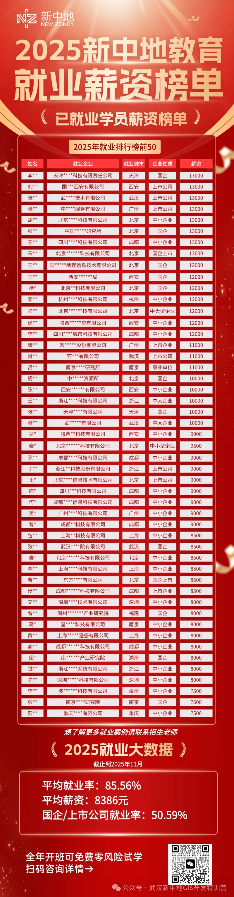 具备研究生学历和GIS开发技能,无论是继续深造还是步入职场,你都将拥有更多的选择权。学习技术,不仅是托底,更是锦上添花,让你在就业路上拥有更多选择。