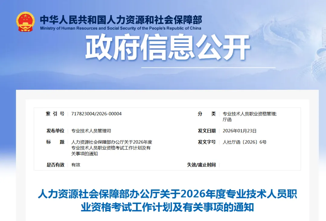 2026年度专业技术人员职业资格考试工作计划及有关事项的通知