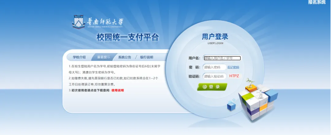 交费网址为:http://hscwxf.scnu.edu.cn/