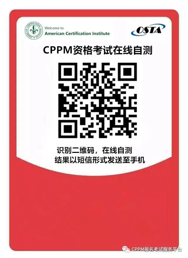 ②想报名学习CPPM的学员,可以在线识别二维码;自测下个人条件是否符合要求,提交成功后;结果将以短信的形式发送至个人手机。