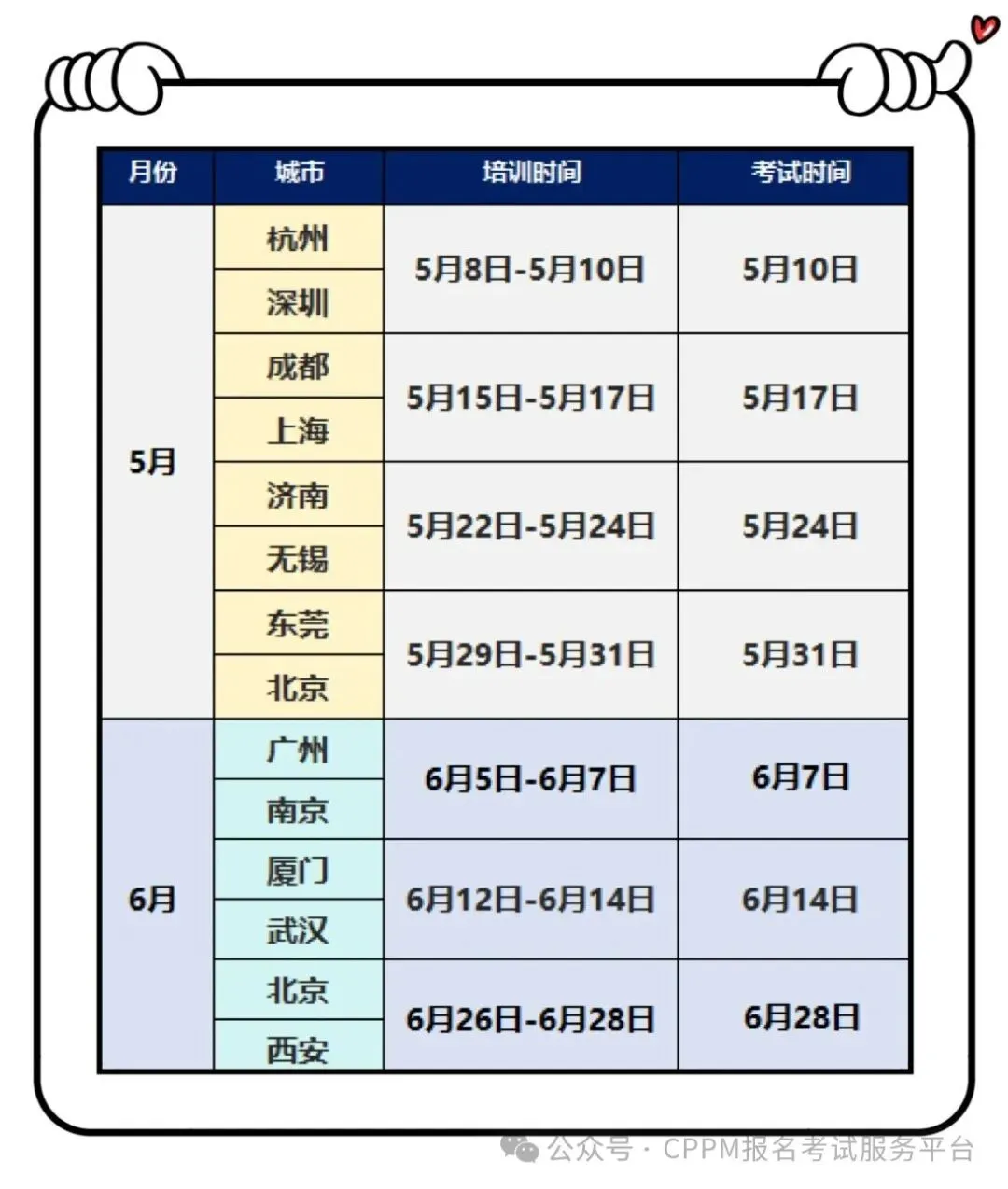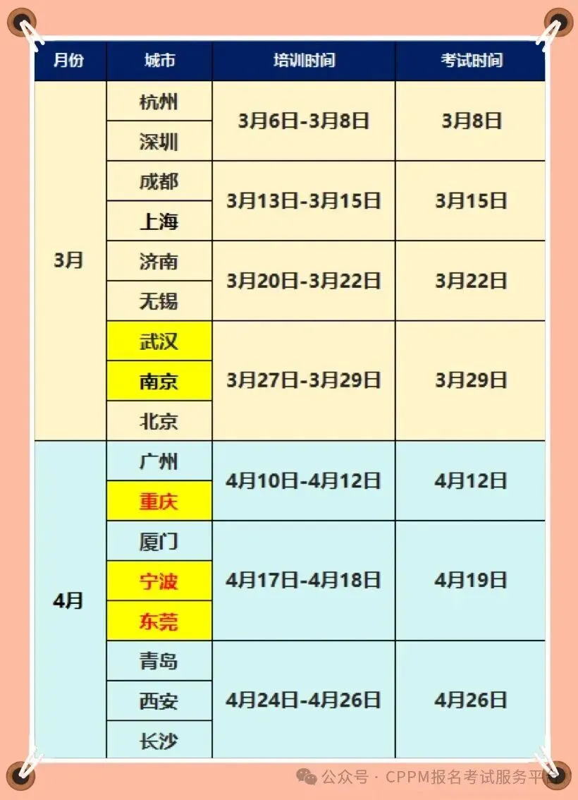 2026年上半年CPPM开课城市已更新,新考点如下: