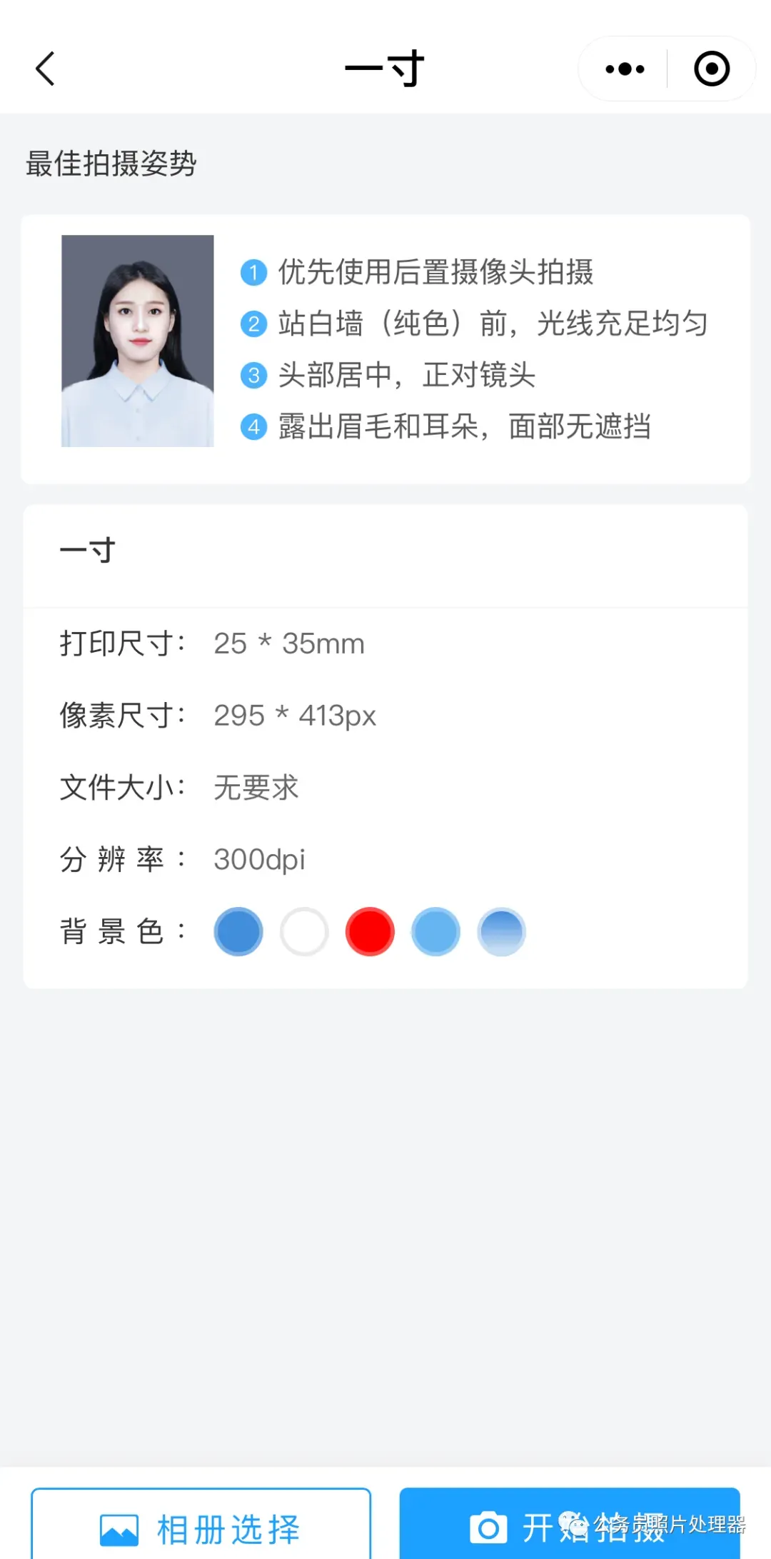 求职场景:银行网申偏好蓝/白底,一寸(25×35mm)或二寸(35×49mm),格式JPG,100KB以内;国央企简历需蓝底(RGB 0,191,243),搭配深色正装;互联网公司可接受白底浅色衬衫,允许微露齿笑,但禁止过度PS。
