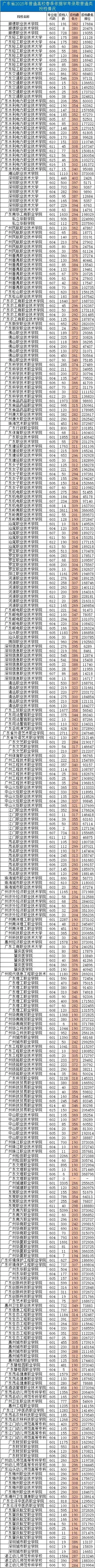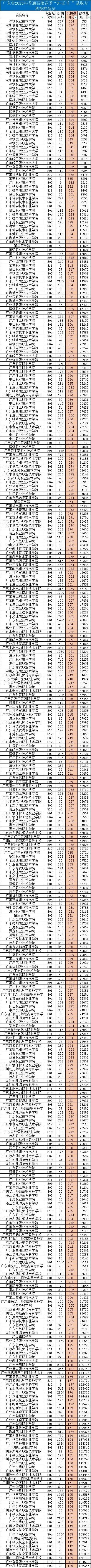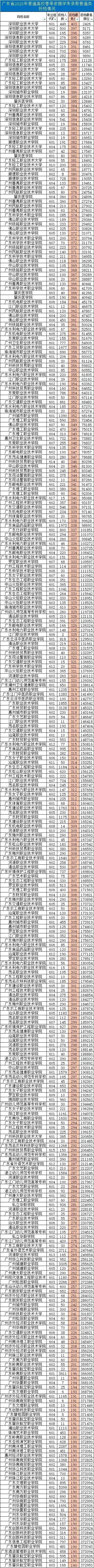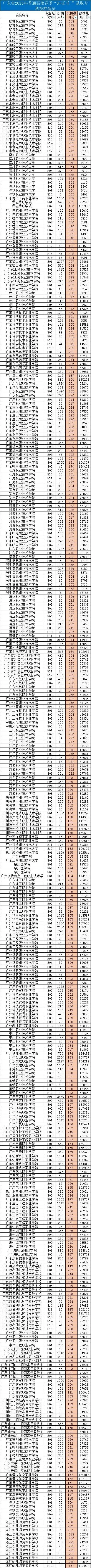 广东省2025年普通高校春季“3+证书”录取专科投档情况