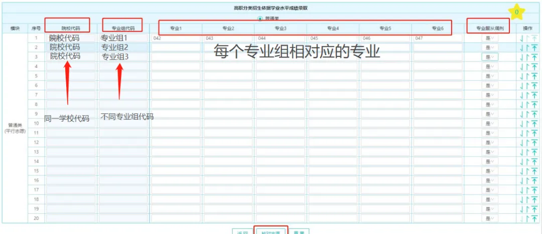 ◆ 学考普通类考生:共可填20个院校专业组志愿,即120个专业志愿;