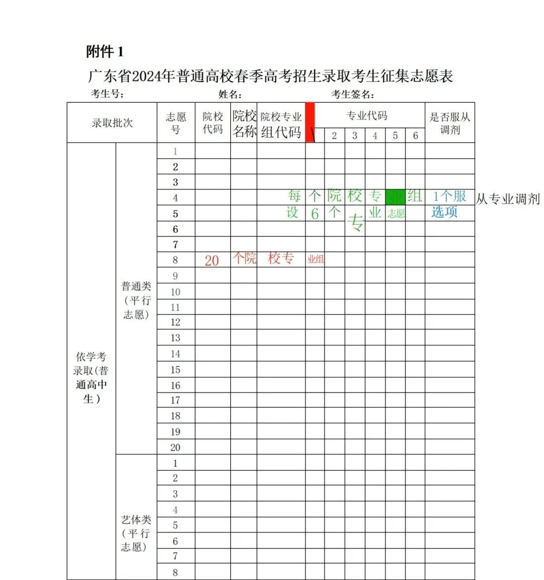附:广东春季高考(学考)志愿表(仅供参考)