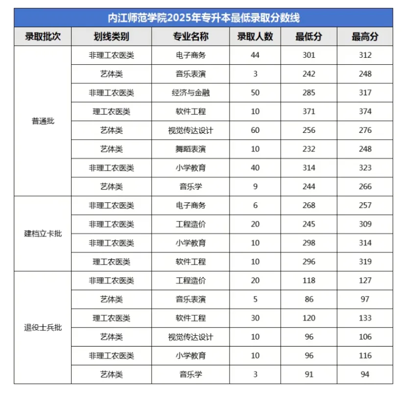 截至目前,四川省已有12所院校公布2025专升本录取分数情况,院校录取分数线持续更新中...