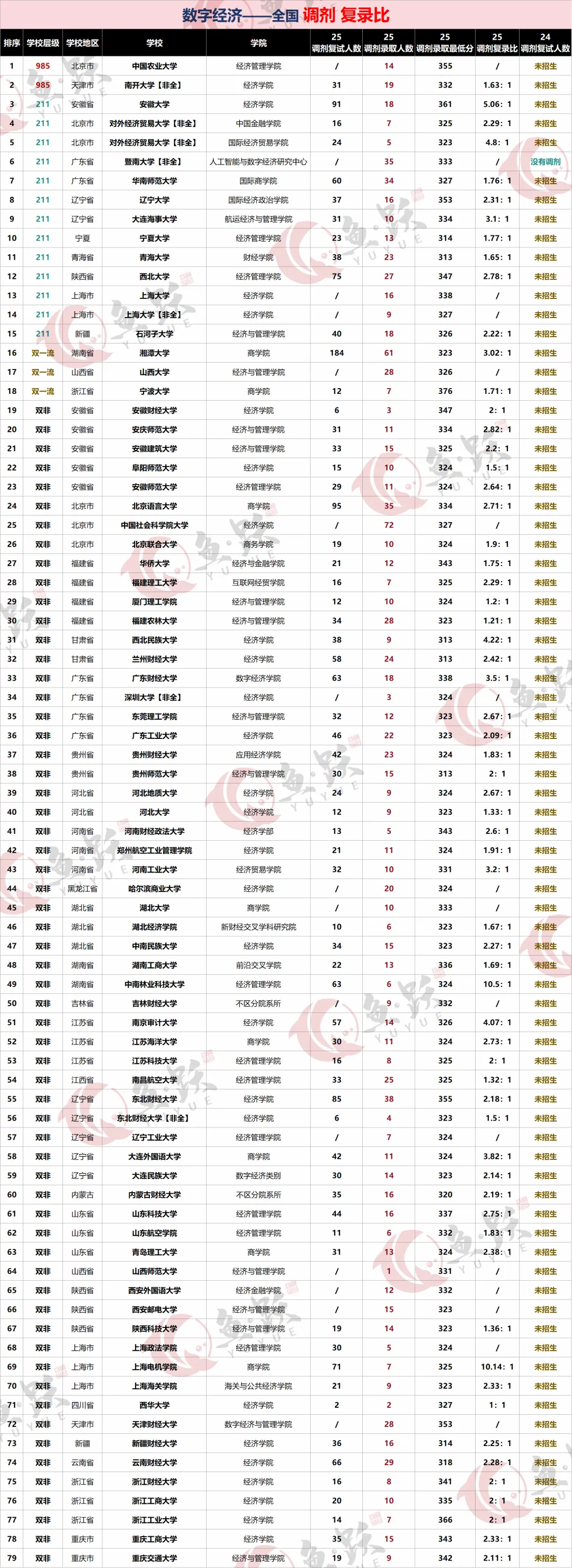 接下来,就为大家送上新鲜整理的 “数字经济调剂复录比”核心数据表(覆盖多所不同层次院校),帮你一眼看透竞争热度👇