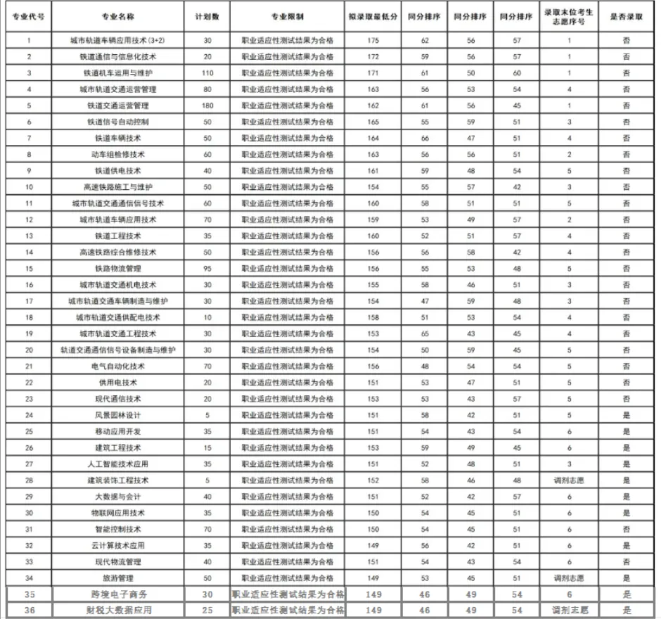 备注:同分考生按普通高中学业水平合格性考试合格门数,职业适应性测试的人文素养、文化常识、思想道德、心理健康成绩依次排序