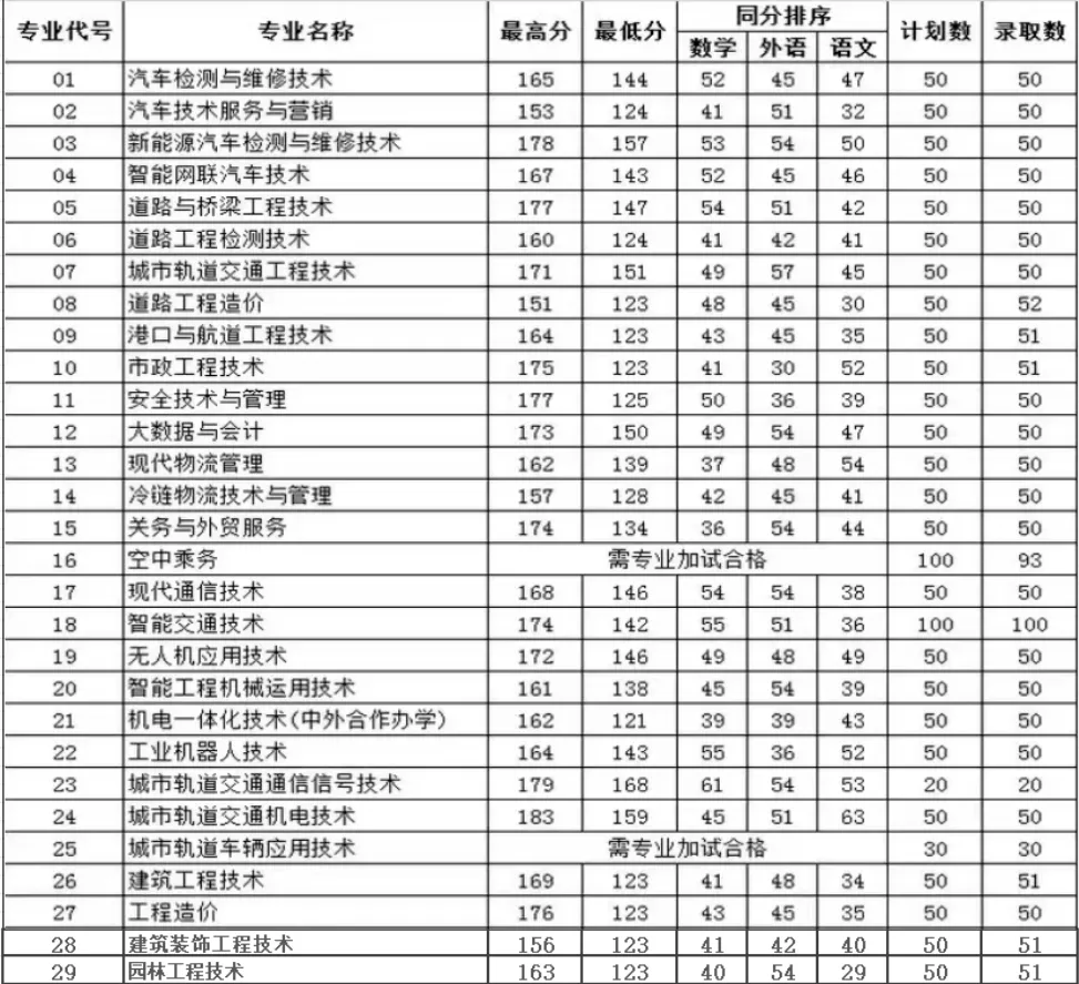 空中乘务专业预录取80人,合格线(职业适应性测试+面试分+政策加分): 153.5分。