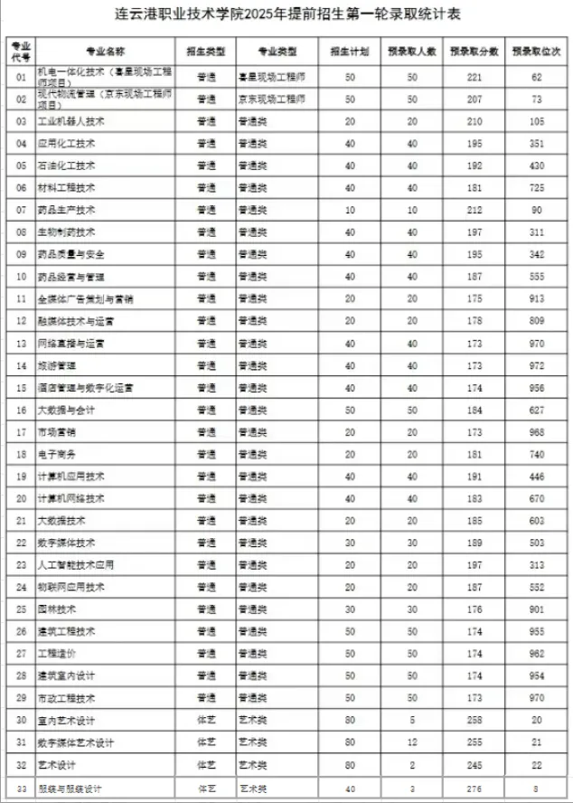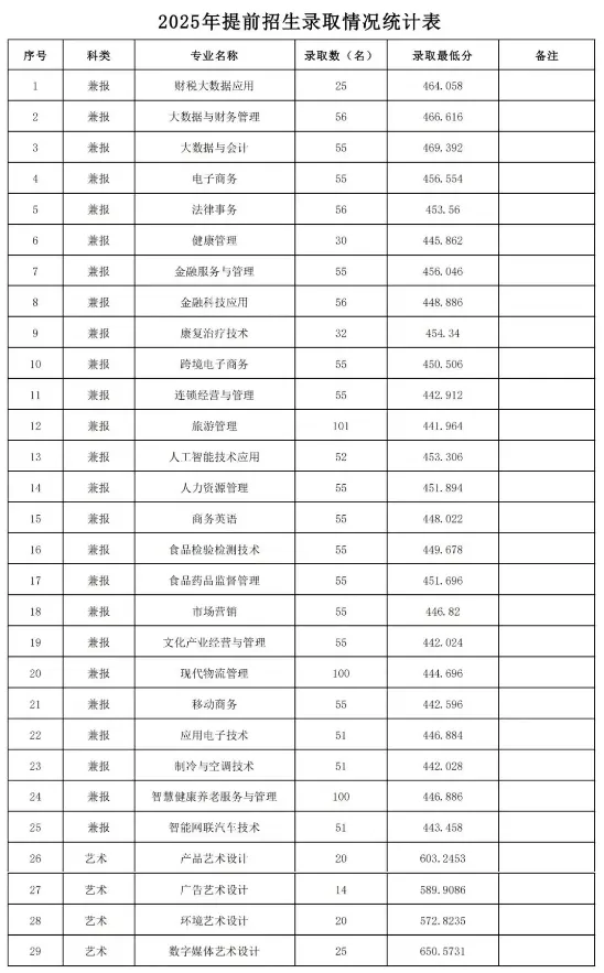 各专业预录取情况如下: