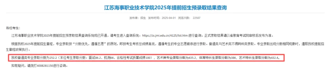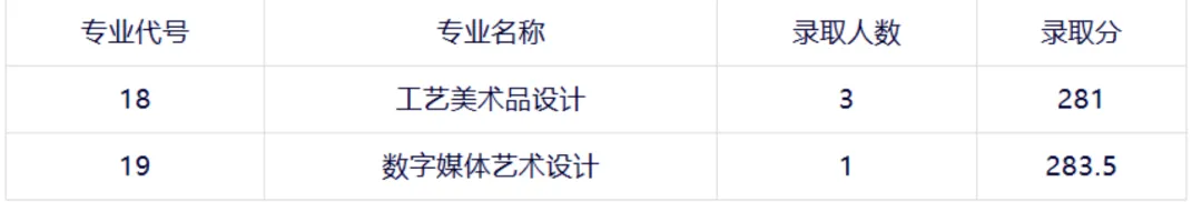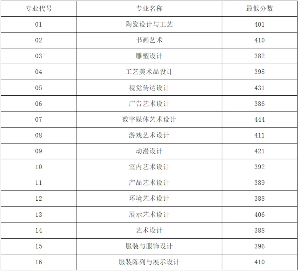 美术类专业预录取4人,合格线(职业适应性测试分+美术统考分+政策加分): 281分。