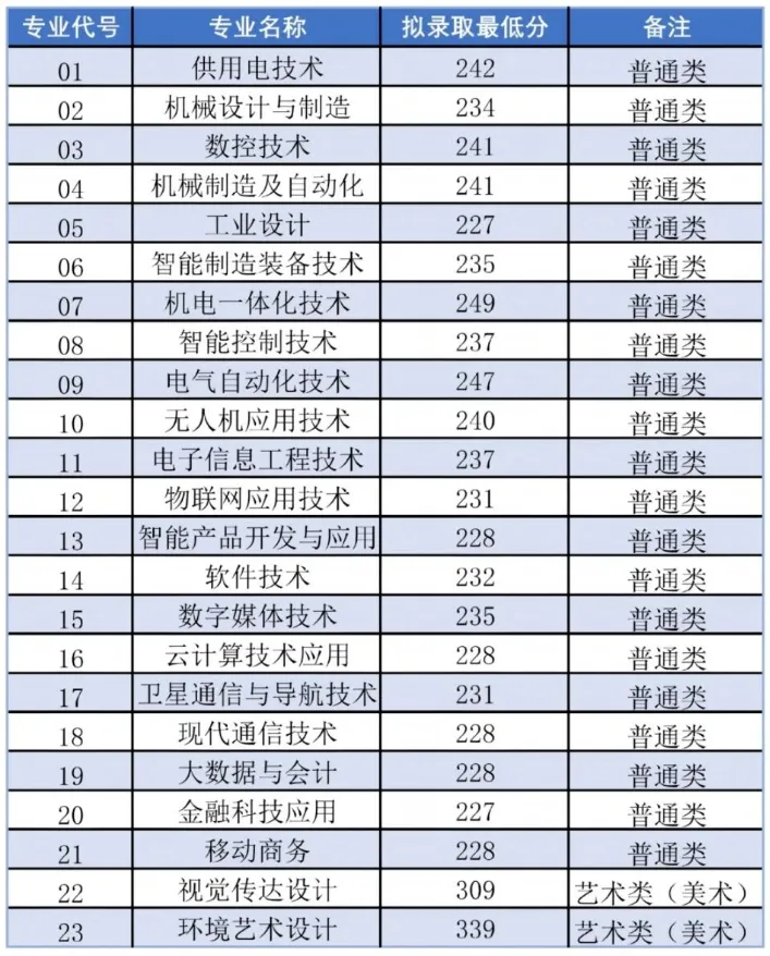 普通类专业(空中乘务专业除外)预录取616人,合格线(职业适应性测试+政策加分):职业适应性测试94.5分(同分录取条件:合格数10,人文素养12分)。