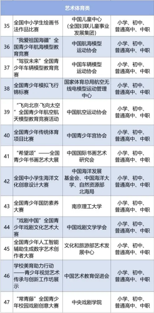 首先,多飞雪主编明确界定了白名单赛事的核心属性:“白名单赛事并非普通竞赛,而是教育部每年筛选并公布、面向6-18周岁学生的官方认证赛事集合,其组织主体均为经中央编办、民政部登记注册的正规机构,从根源上保证了赛事的权威性、公益性和高含金量,这也是它区别于各类商业竞赛的核心优势。”据了解,当前教育部白名单赛事共47项,涵盖三大类别,其中科创类占比52%,人文综合素养类占27%,艺术体育类占21%。除了家长熟知的数学、物理、化学、生物、信息学五大奥林匹克竞赛外,近年来还新增了创客教育、环境保护、人工智能等贴合时代趋势的赛事,覆盖领域更全面,适配不同特长的孩子。