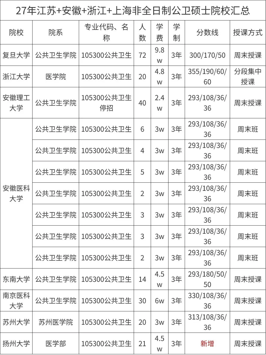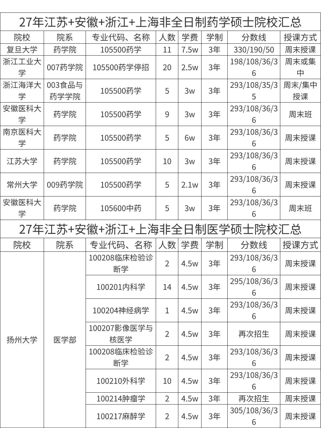 【27考研】江苏+浙江+上海+安徽非全日制医学类硕士研究生院校合集