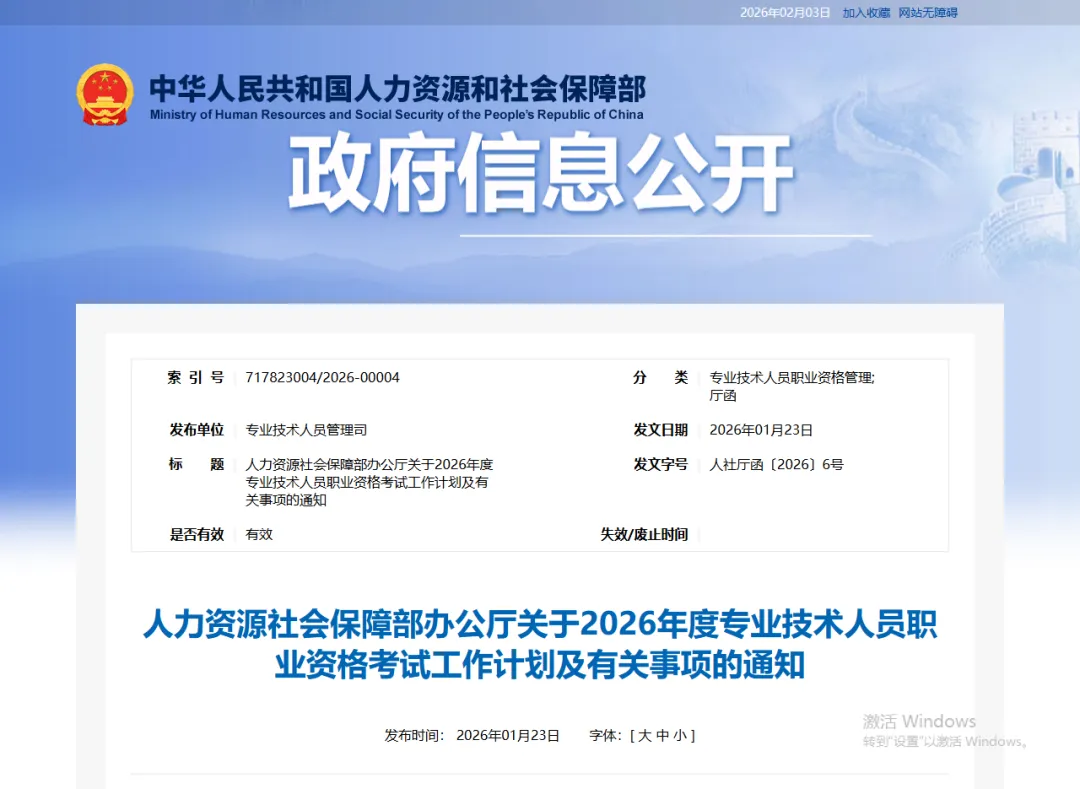 《关于2026年度专业技术人员职业资格考试工作计划及有关事项的通知》