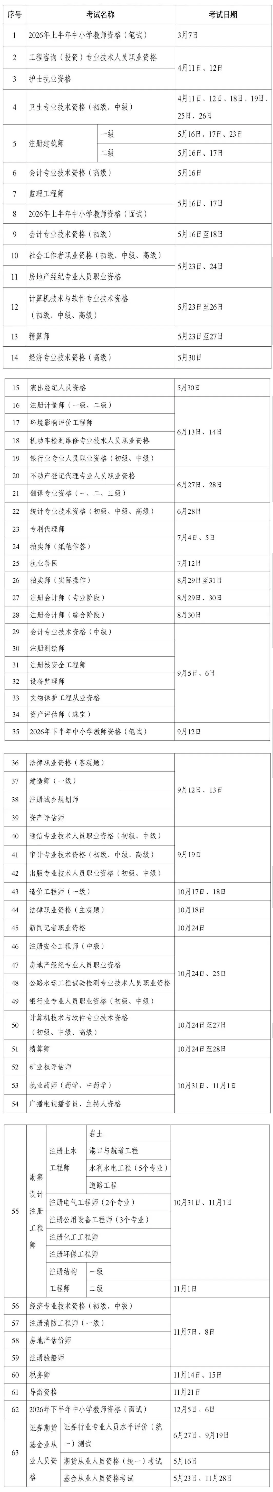 近日,人力资源社会保障部发布了《关于2026年度专业技术人员职业资格考试工作计划及有关事项的通知》。