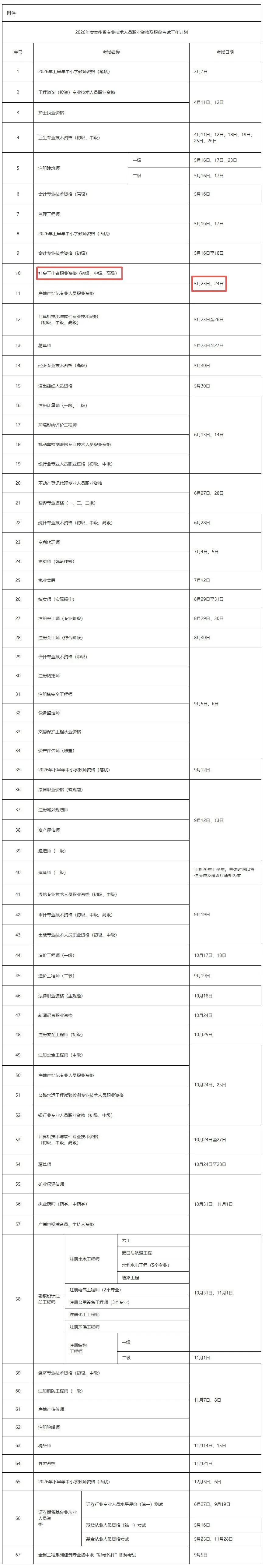 二、为更好地服务考生,根据我省部分专业技术人员职业资格考试报名人数和组织实施情况,决定从2026年起改进部分考试组织方式。一是优化二级造价工程师职业资格考试时间安排,以利于工程造价专业大学本科及以上学历毕业生能够按政策毕业后直接报考,切实提升工程造价专业毕业生就业竞争力。同时,考试统一集中在省直考区进行,各市(州)不再设置考区。二是社会工作者职业资格考试不再统一集中在省直考区考试,由各市(州)人力资源社会保障局在各市(州)设置考区并承担考试考务工作。二级造价工程师和社会工作者职业资格考试具体考务安排另行通知。
