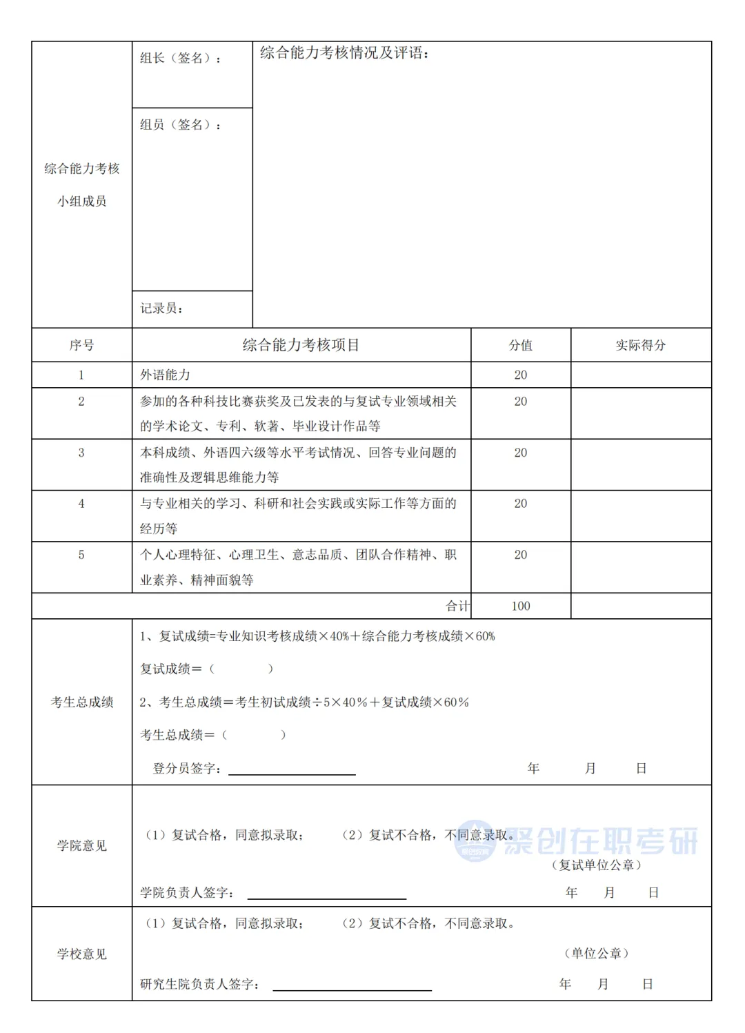 复试成绩=专业知识考核成绩×40%+综合能力考核成绩×60%