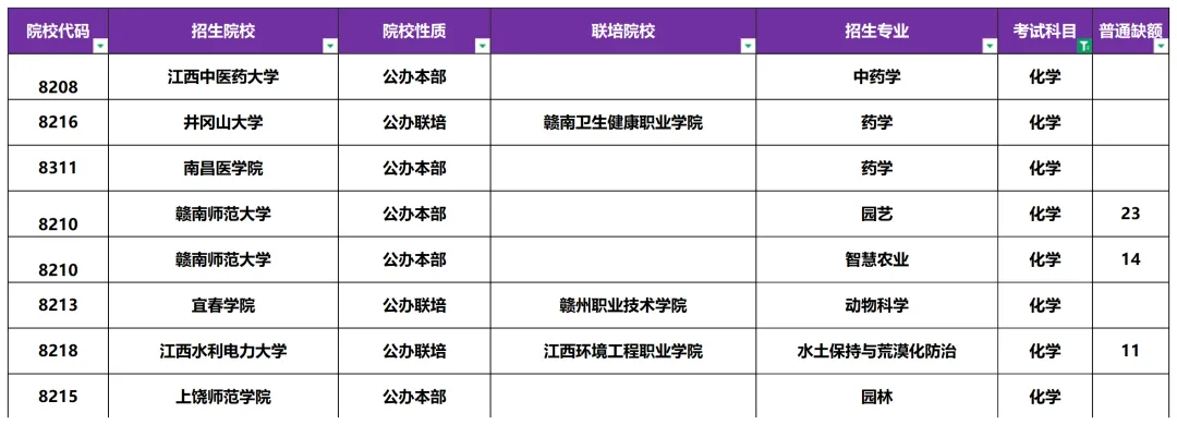 值得一提的是,25年赣南师范大学,江西水利电力大学农医药类均有缺额,江西中医药大学大国工匠的中药学专业更是缺额人数达27人。今年农医药类的同学填志愿时可以参考!