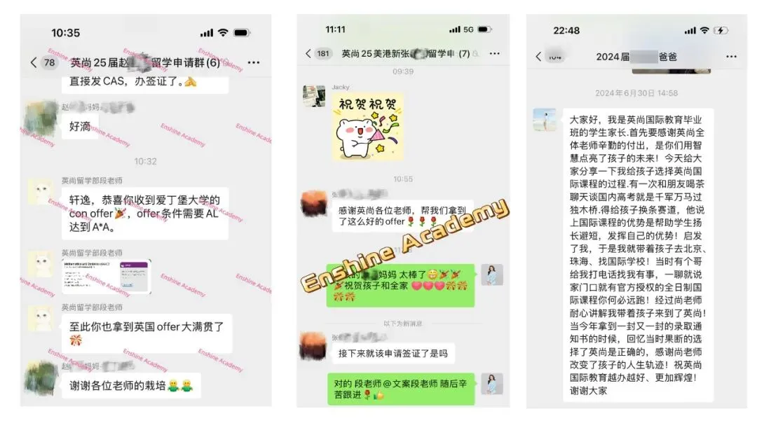家长们也对我们的教学和服务给予了高度评价,他们认为英尚学院的个性化学习方案和及时的学情反馈,让他们能够全面了解孩子的学习情况,与学校共同促进孩子的成长。看到孩子们取得的优异成绩和顺利拿到名校 offer,家长们感到非常欣慰和感激。