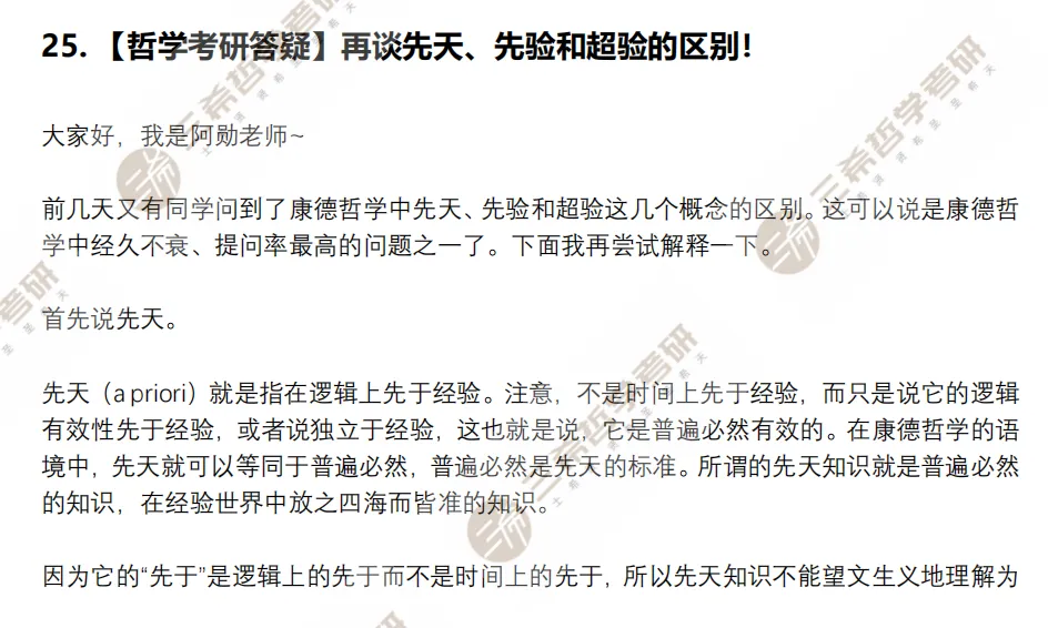 去年6月份,我把我从2022年做哲学考研辅导以来写的答疑文章(都发布在了公众号上)做了汇总,整理成文档共17万字。这个文档是免费的,只要感兴趣都可以联系客服领取。【点击查看:免费领取|阿勋老师17万字哲学考研问答录】