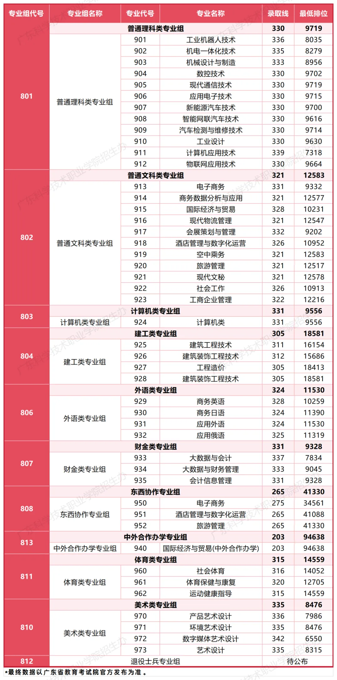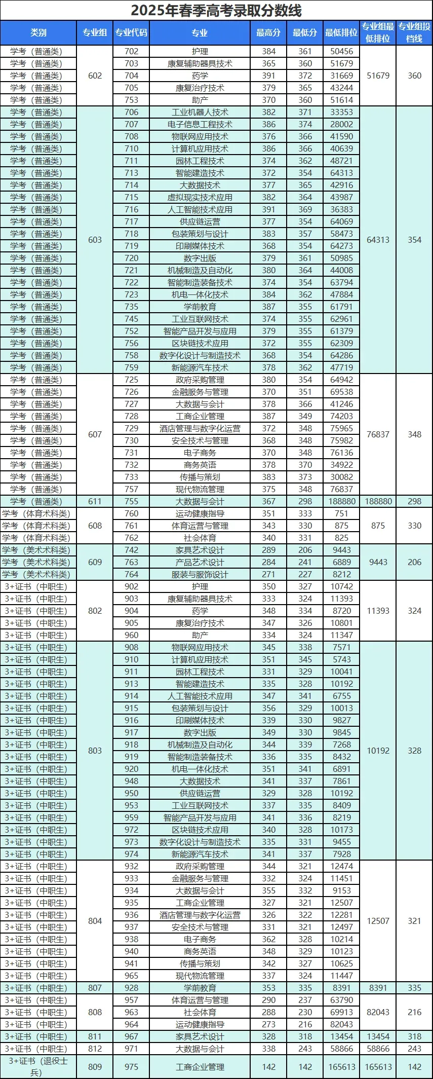 韩山师范学院2025年“3+证书”本科招生的录取分数如下:
