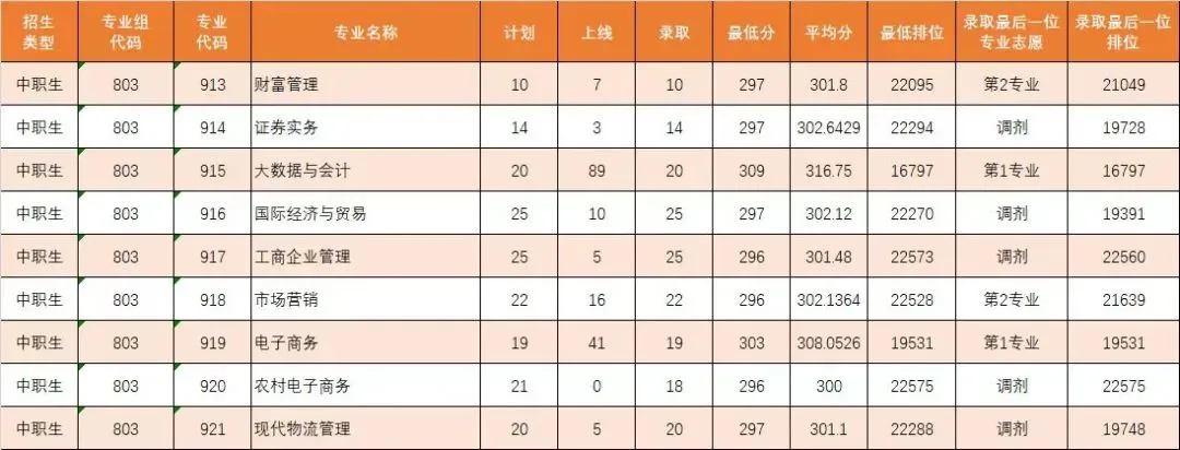 每个院校专业组都设置有若干个专业,按照招生章程中规定的录取原则按专业进行录取,每一个专业的录取都会自然形成录取最高分、录取最低分,通常将某个专业的录取最低分称为专业录取分数线,简称专业线。