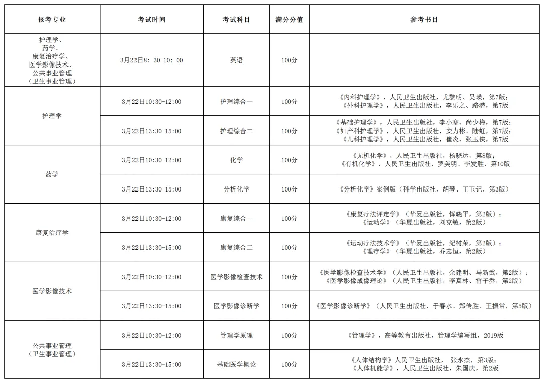 英语:上午8:30-10:00,满分100分,考试时间为90分钟;