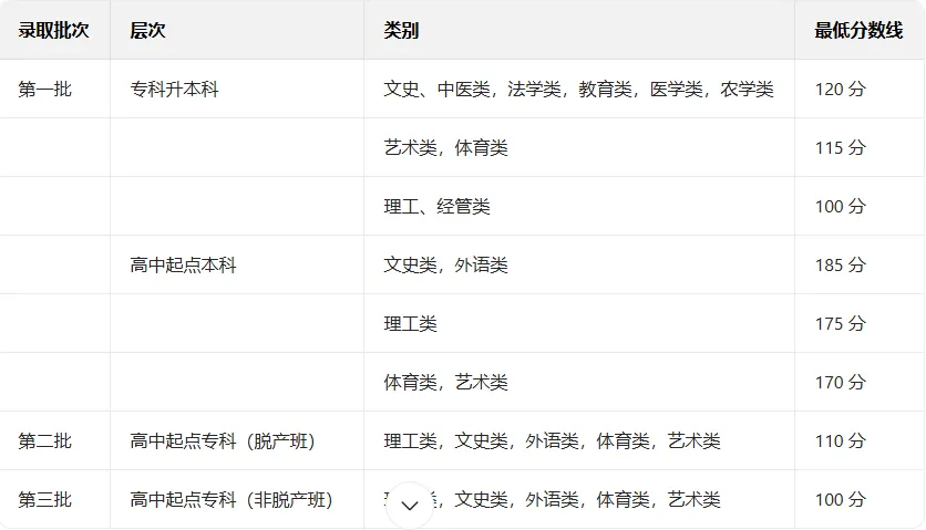 以下分数线均来自广东省教育考试院官方公布信息,涵盖专升本、高起本、高起专三大层次及各类别,是报考的核心参考依据。