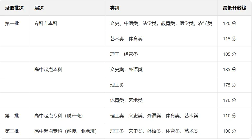 1. 2025年广东成人高考分数线