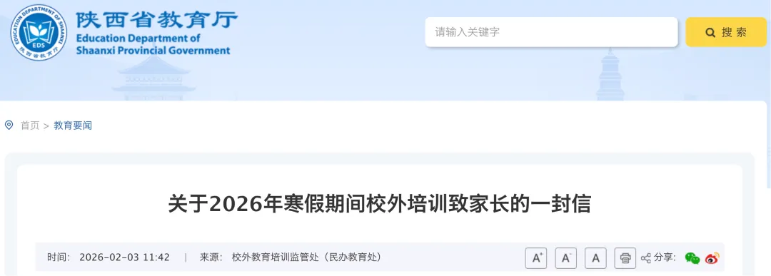 2026年寒假即将来临,为保障中小学生度过平安祥和、健康快乐、富有意义的假期,省教育厅、省科技厅、省文化和旅游厅、省市场监督管理局、省体育局、省消防救援总队联合向广大家长朋友发出如下温馨提示: