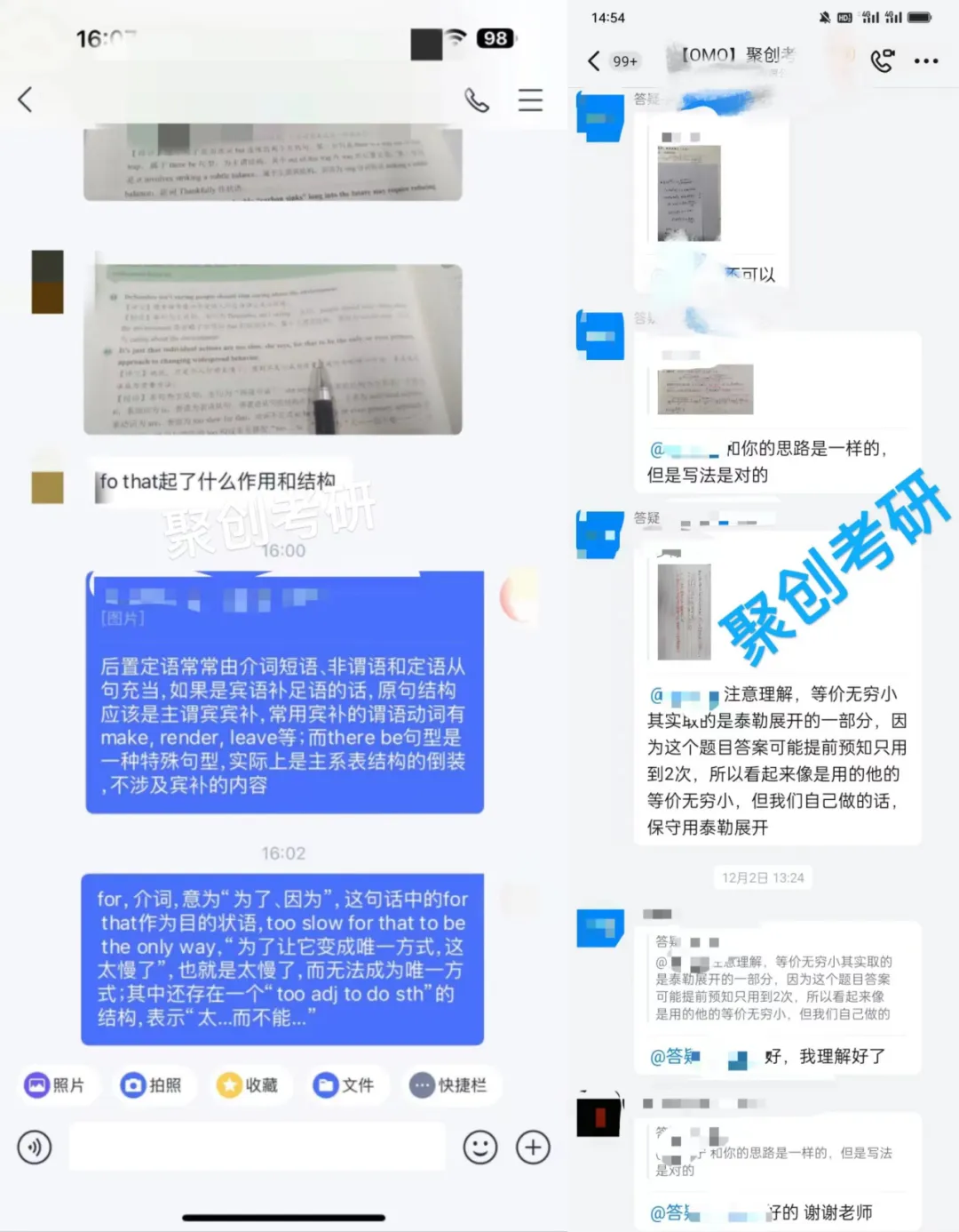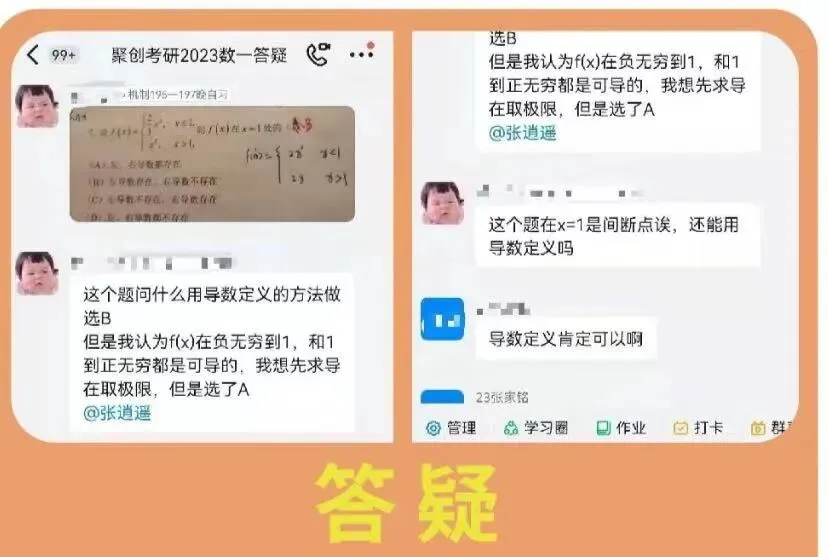 为了更好地解决同学们学习上的难题,咱们聚创考研配置了专门的答疑团队:科任老师+研究生团队随时随地攻克困难。